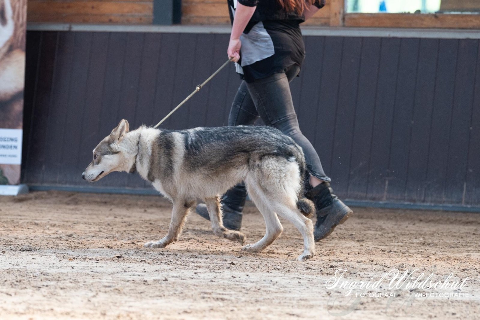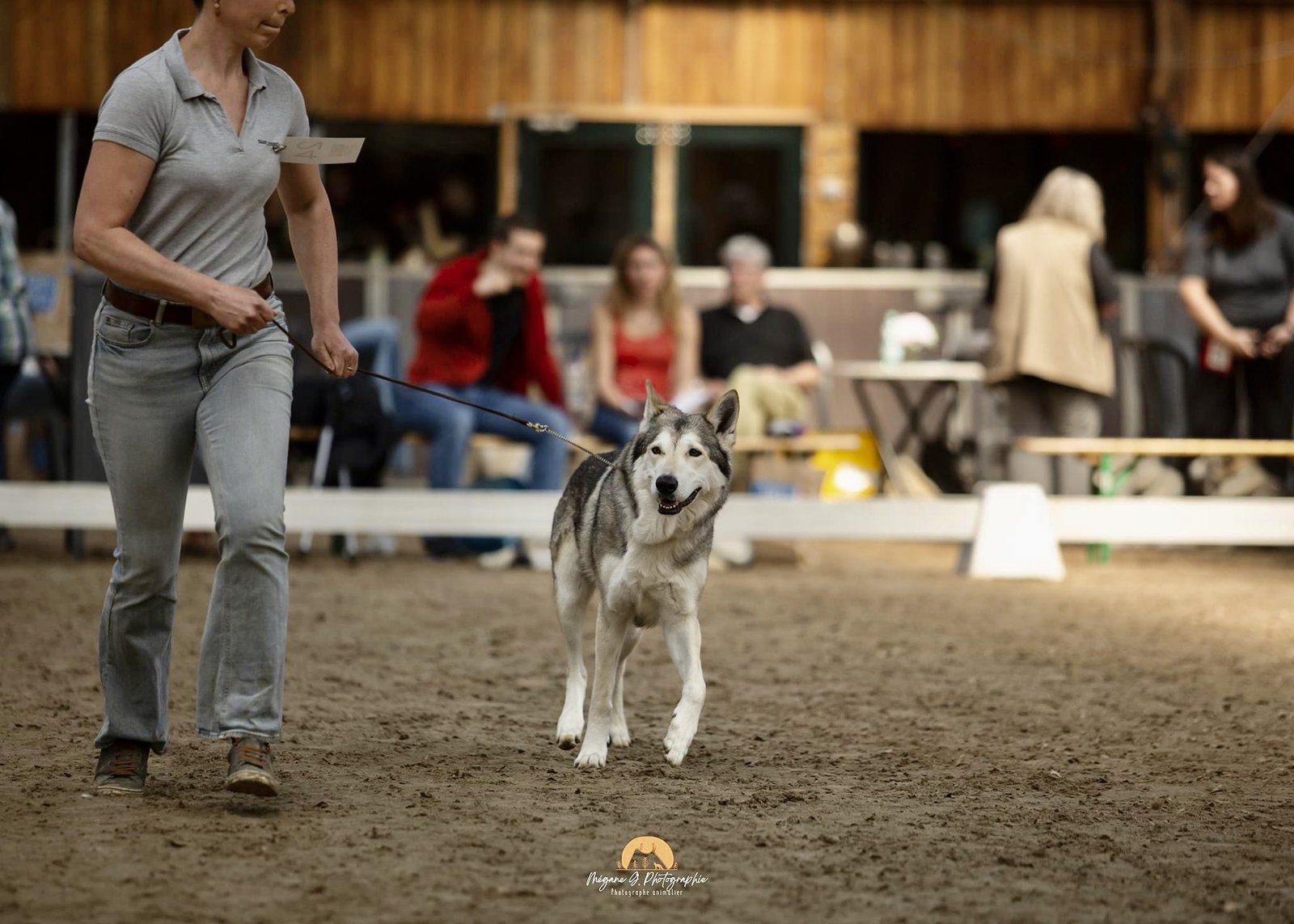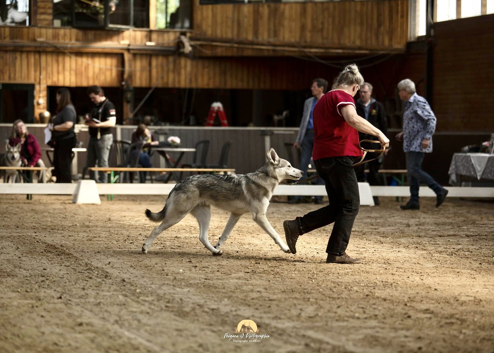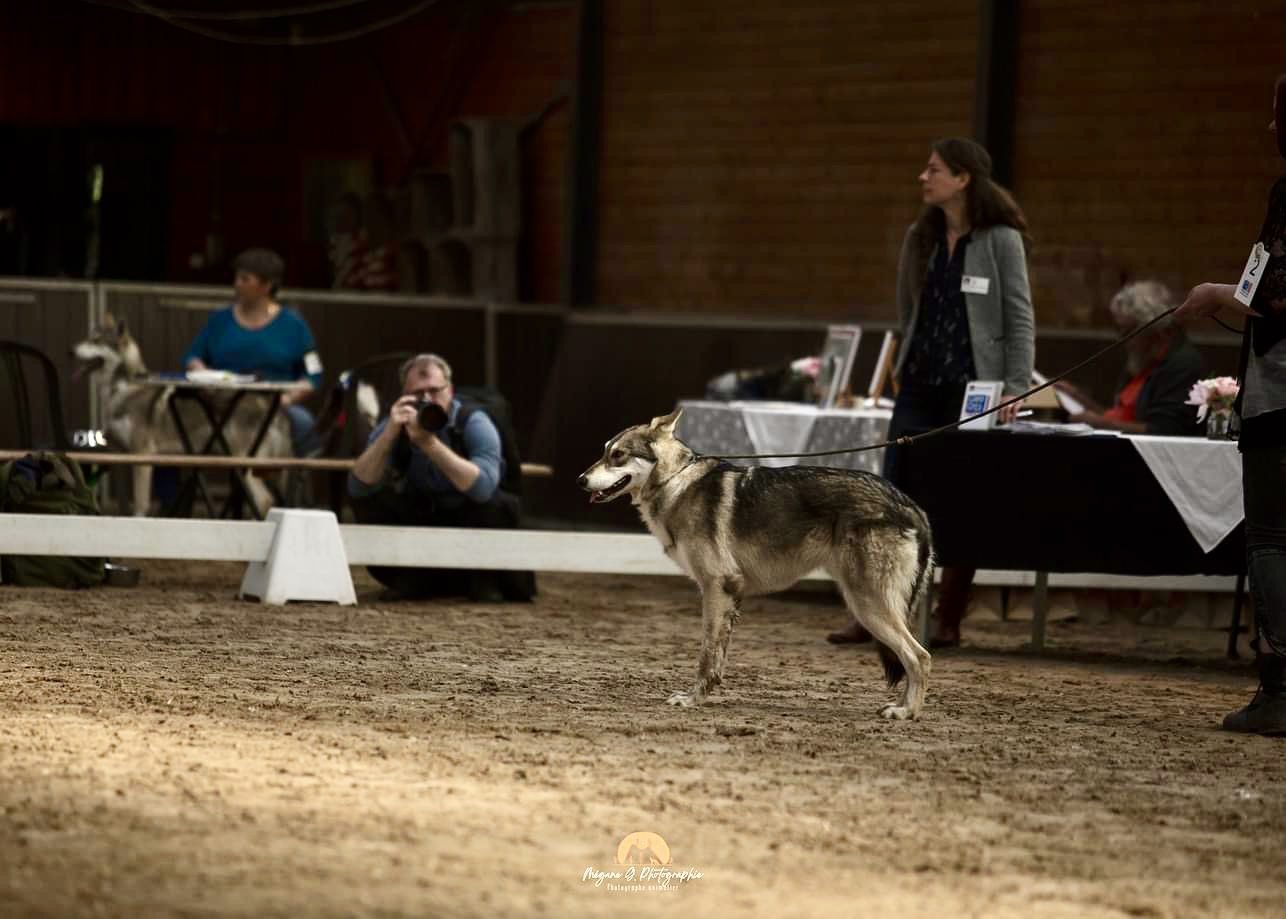 Tyr n’était pas du tout à son aise dans cet environnement. Il était très stressé au moindre bruit. Il est rentré sur le ring et a fait difficilement la première partie de ses allures puis s’est présenté devant le juge. Par la suite, à la deuxième partie des allures, il a refusé de bouger. Sa maîtresse a décider avec sagesse, de ne pas lui infliger plus de stress et lui a fait quitter le ring.