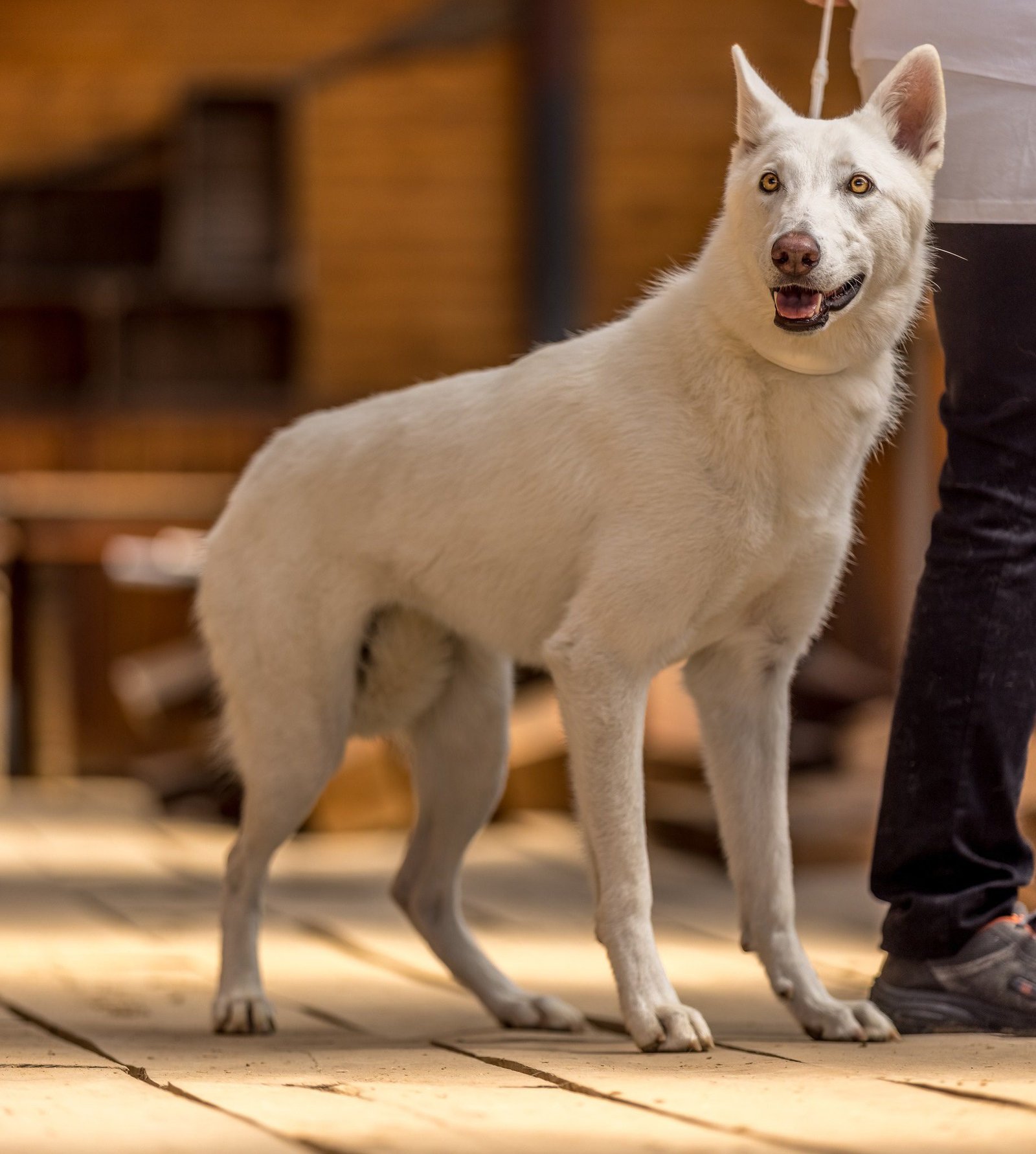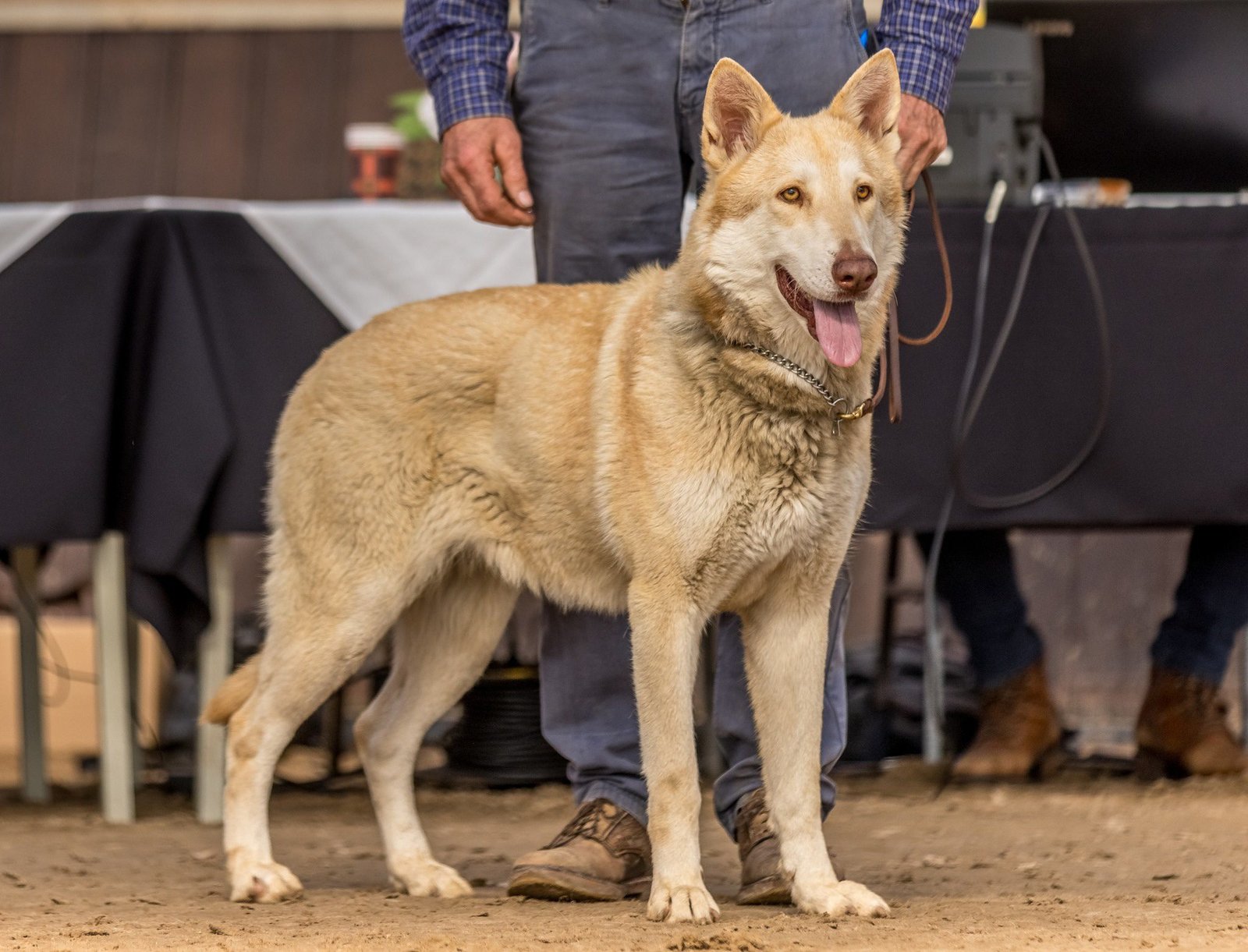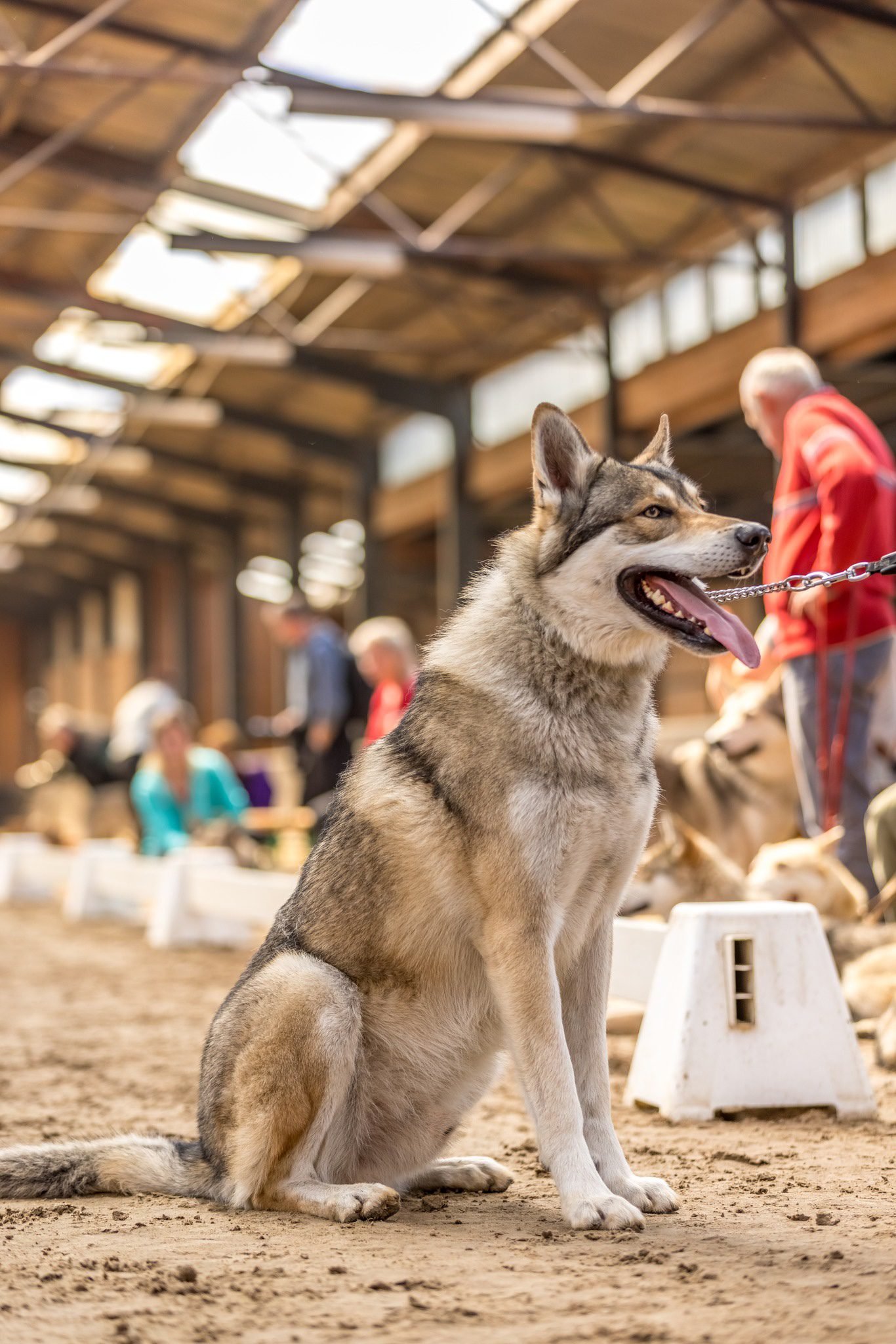 Participer au KCM est aussi l’opportunité de voir des couleurs rares de Saarloos comme par exemple, le blanc (même si personnellement, je n’ai jamais été attiré par cette couleur qui, de mon avis, retire complètement le masque et les marquages qui font penser au loup). Nous avons pu également voir quelques chiens issus du programme outcross de l’AVLS et de la NVSWH.