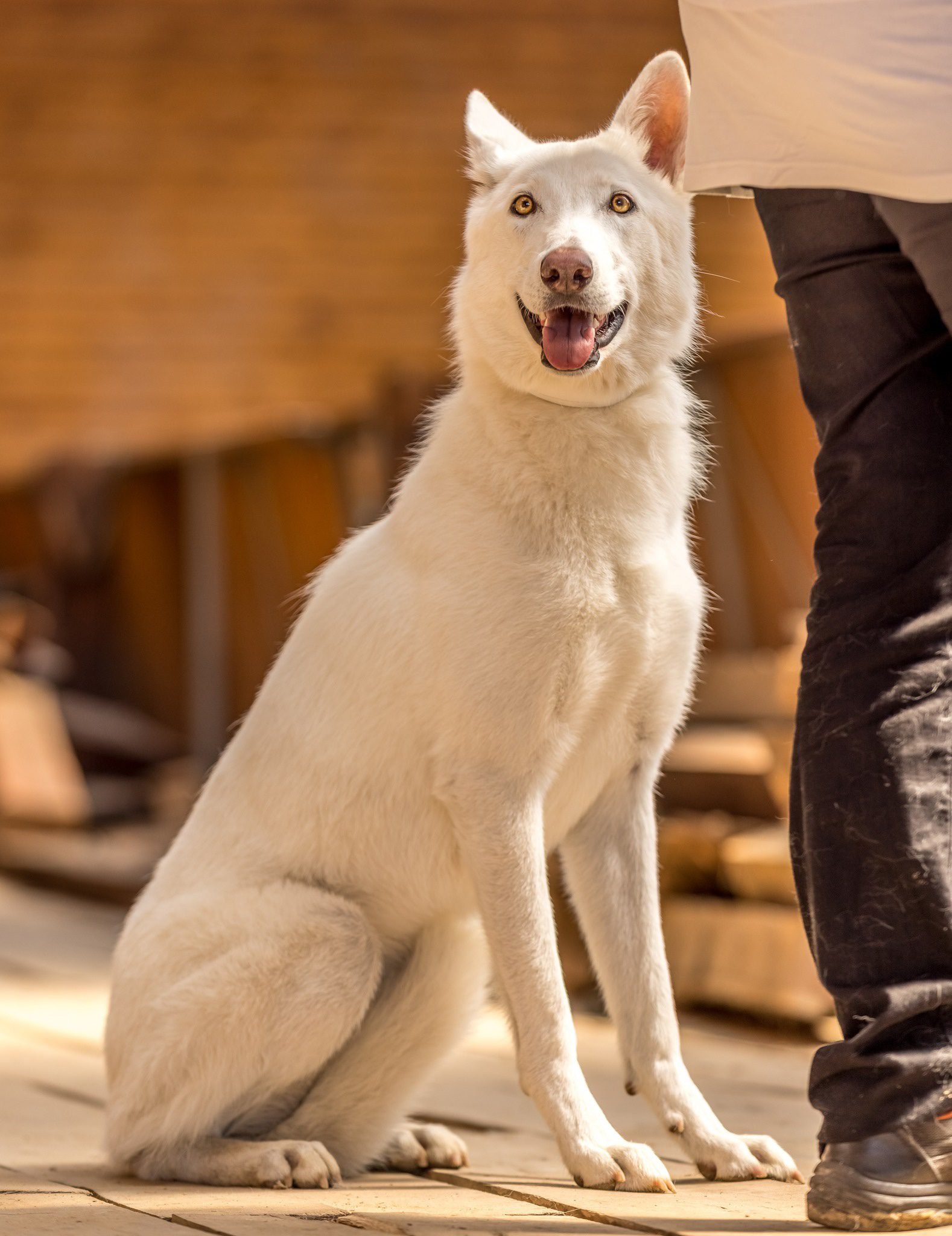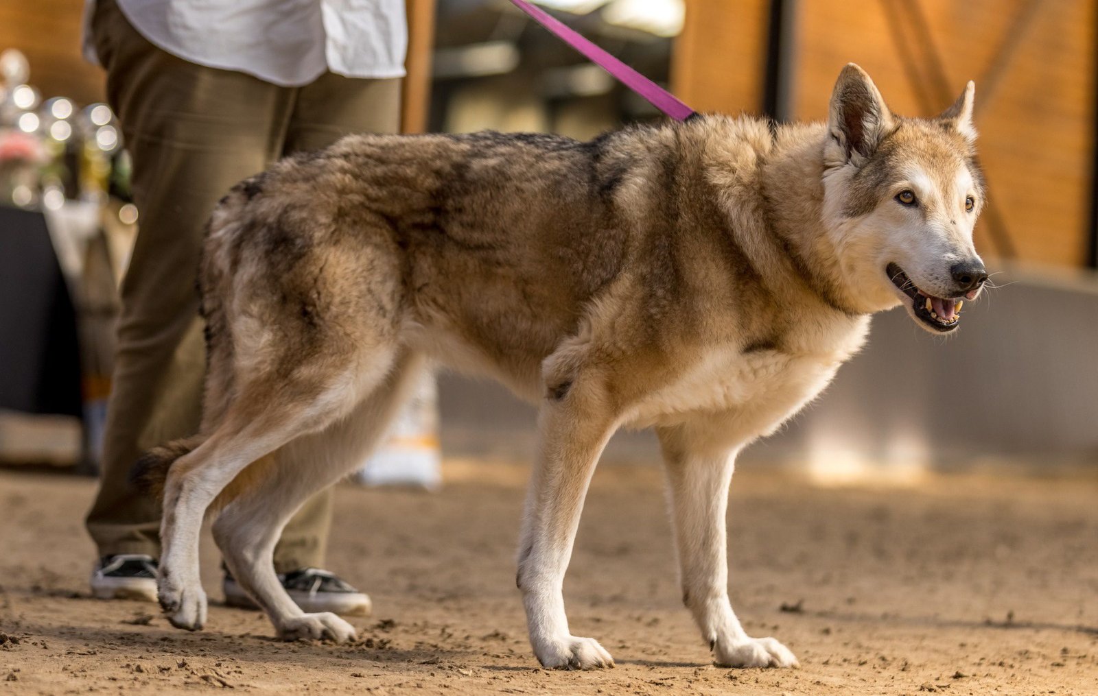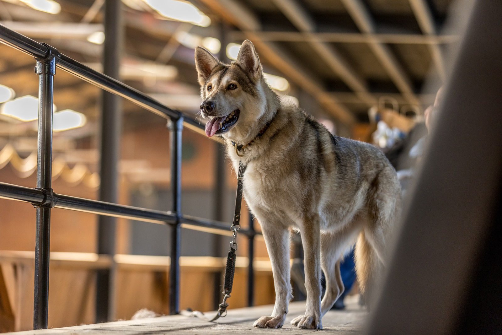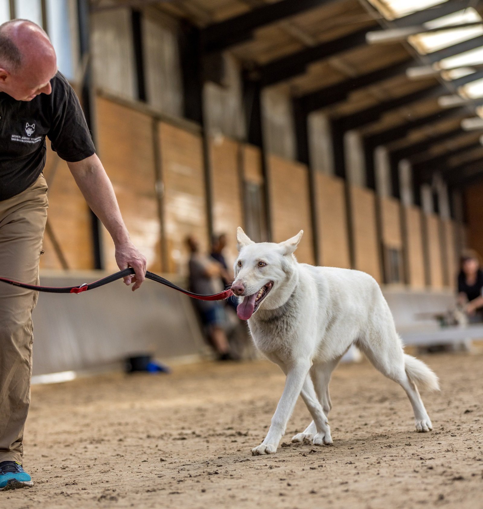 Participer au KCM est aussi l’opportunité de voir des couleurs rares de Saarloos comme par exemple, le blanc (même si personnellement, je n’ai jamais été attiré par cette couleur qui, de mon avis, retire complètement le masque et les marquages qui font penser au loup). Nous avons pu également voir quelques chiens issus du programme outcross de l’AVLS et de la NVSWH.
