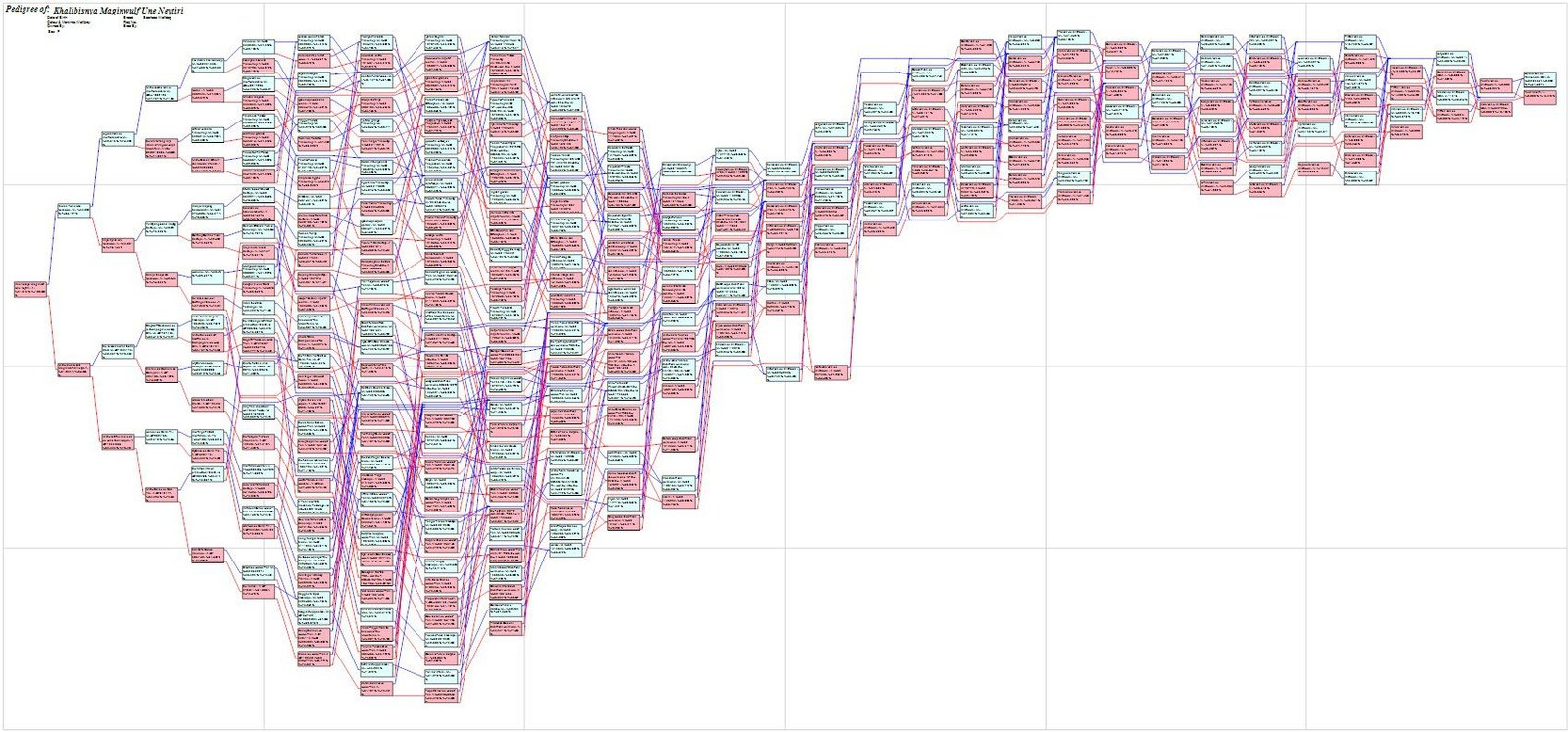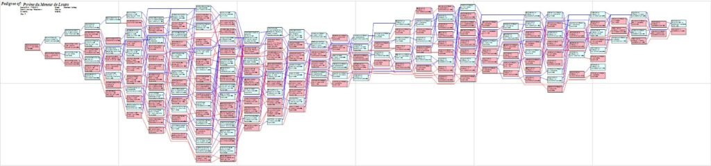 Le nombre de générations inclues dans ce PedChart est énorme ! Il aurait été impossible d’obtenir la même chose au travers d’un pédigree classique sous une forme aussi compacte et synthétique.