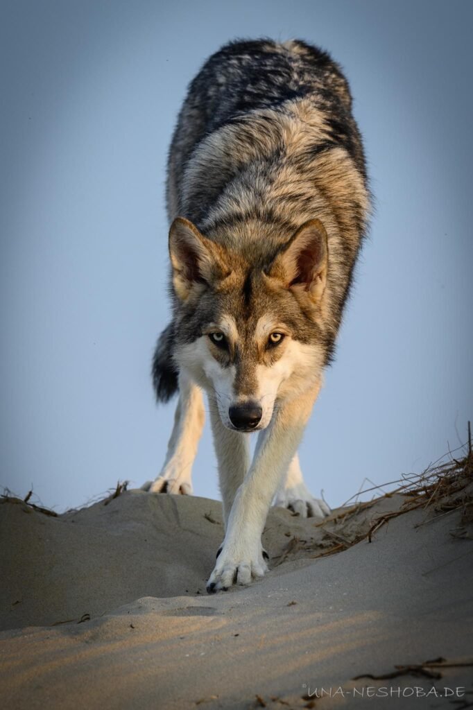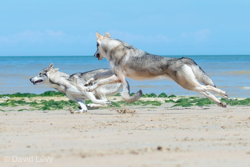 Que ce soit en forêt, dans un champ, sur une plage en bord de mer ou en bord de rivière ; le chien-loup de Saarloos s’impose sur les images par sa prestance et ses attitudes empruntées à son ancêtre le loup.