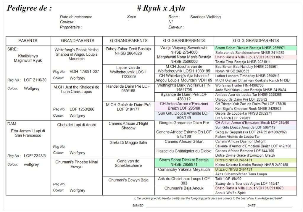 Couleur attendue des chiotsGris de loup et Brun de forêt