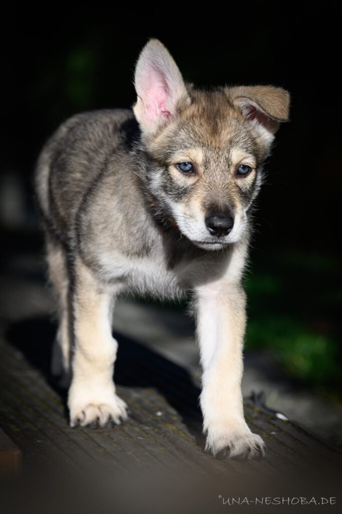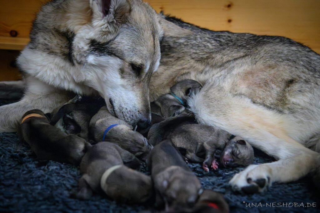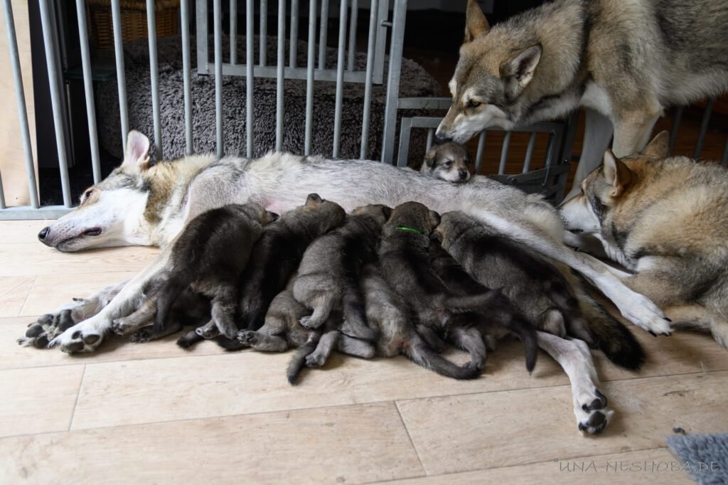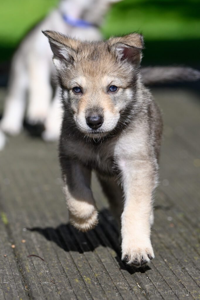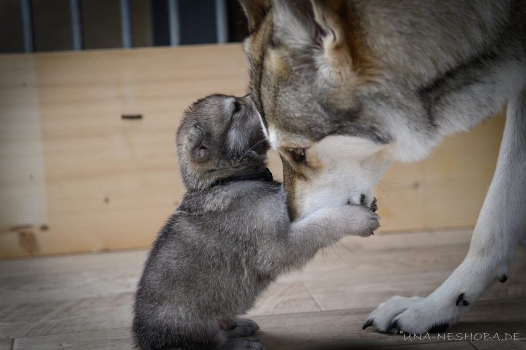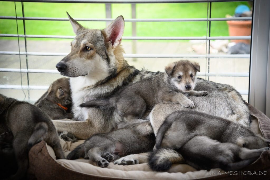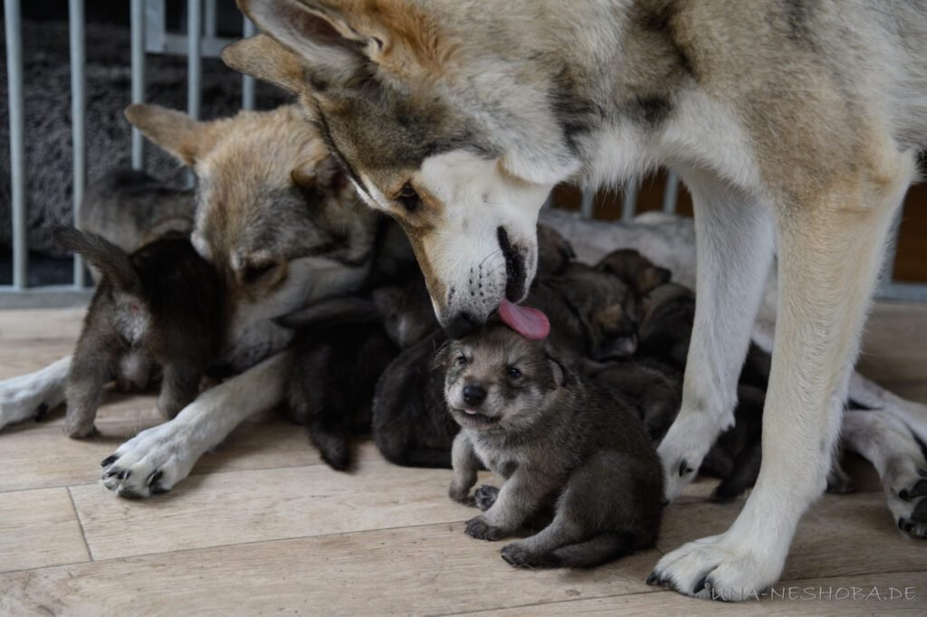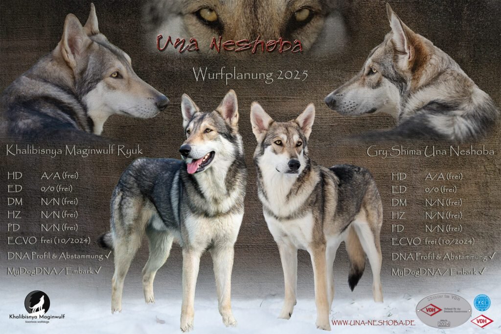 Je suis très heureux d’avoir pu croiser sur ma route de l’élevage du chien-loup de Saarloos, Carmen Tischler. 15 chiots sont nés de cette collaboration. Deux femelles sont restées à l’élevage Una Neshoba et devraient à leur tour prendre part à la production du chien-loup de Saarloos : Khalibisnya Maginwulf Une Neytiri et Haeva Nayeli Una Neshoba. Également dans leurs fratries, certains de leurs frères seront aussi disponibles à la reproduction.