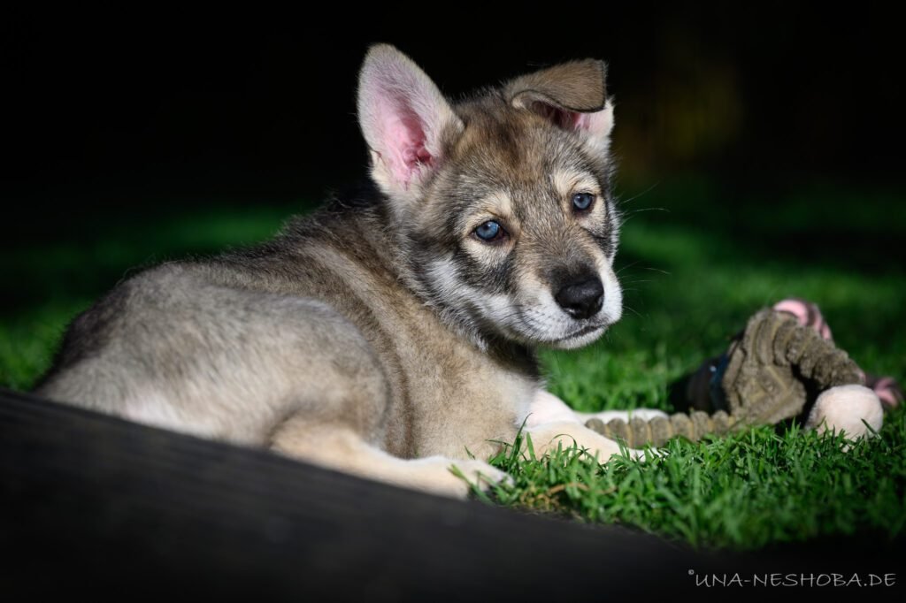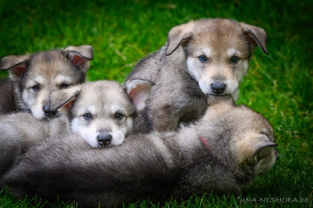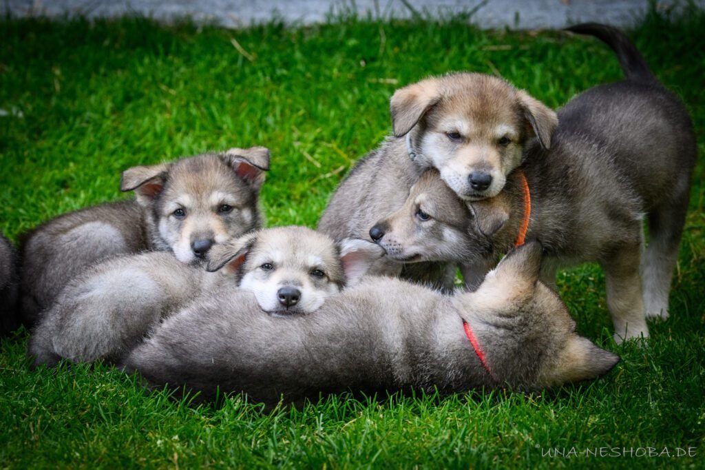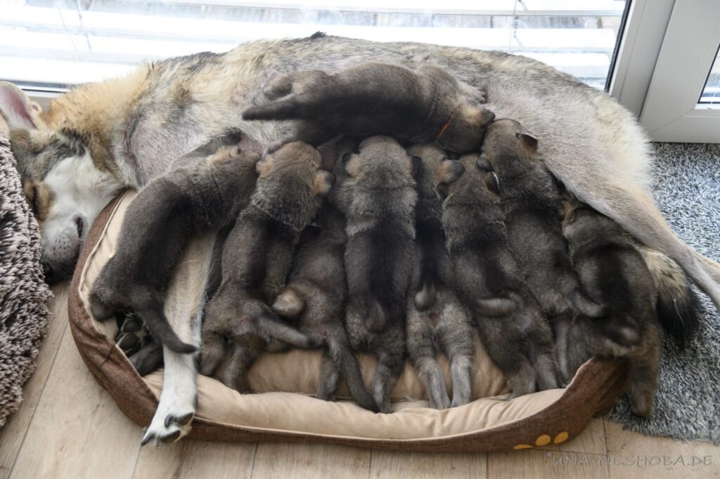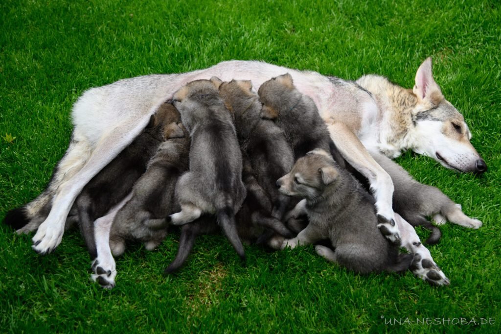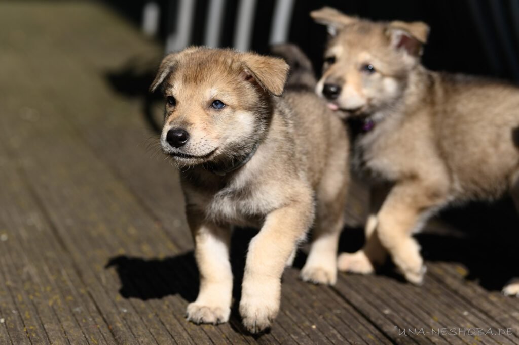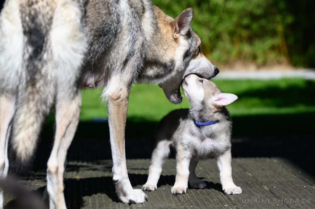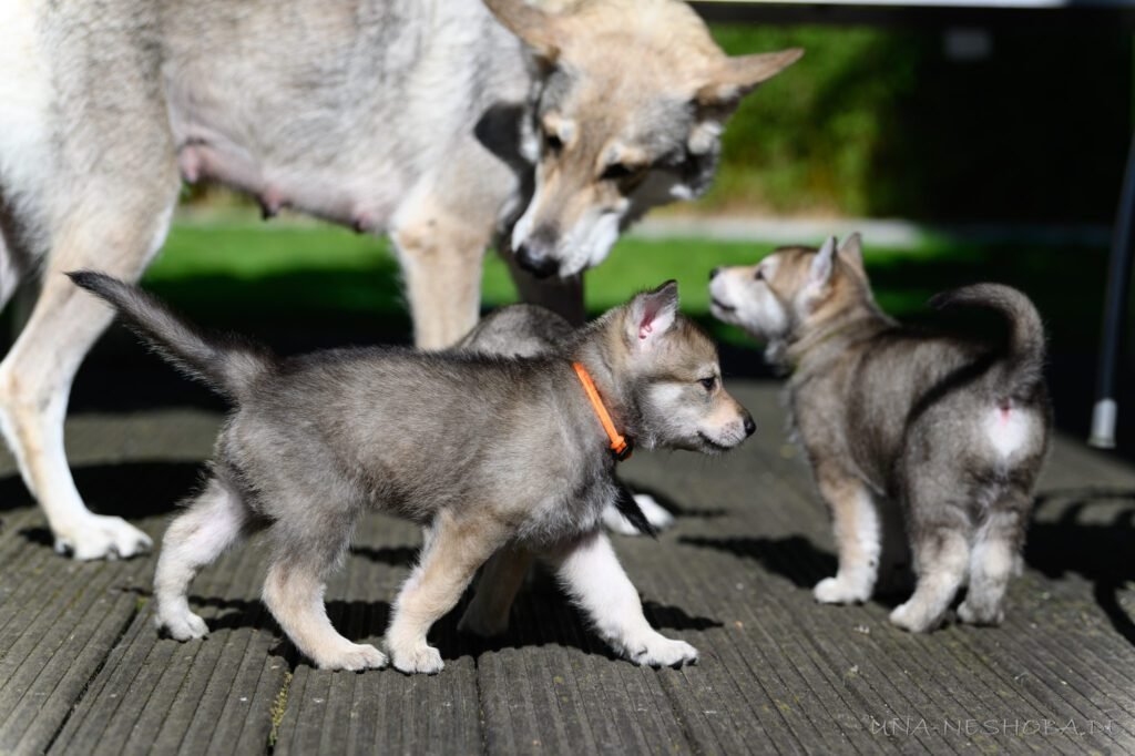 Je suis très heureux d’avoir pu croiser sur ma route de l’élevage du chien-loup de Saarloos, Carmen Tischler. 15 chiots sont nés de cette collaboration. Deux femelles sont restées à l’élevage Una Neshoba et devraient à leur tour prendre part à la production du chien-loup de Saarloos : Khalibisnya Maginwulf Une Neytiri et Haeva Nayeli Una Neshoba. Également dans leurs fratries, certains de leurs frères seront aussi disponibles à la reproduction.