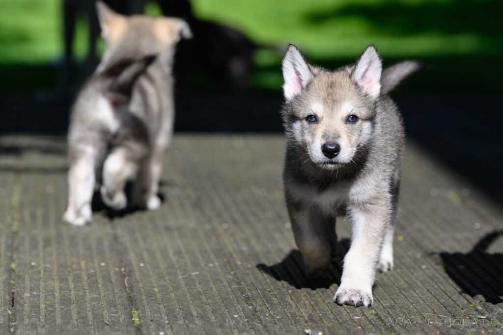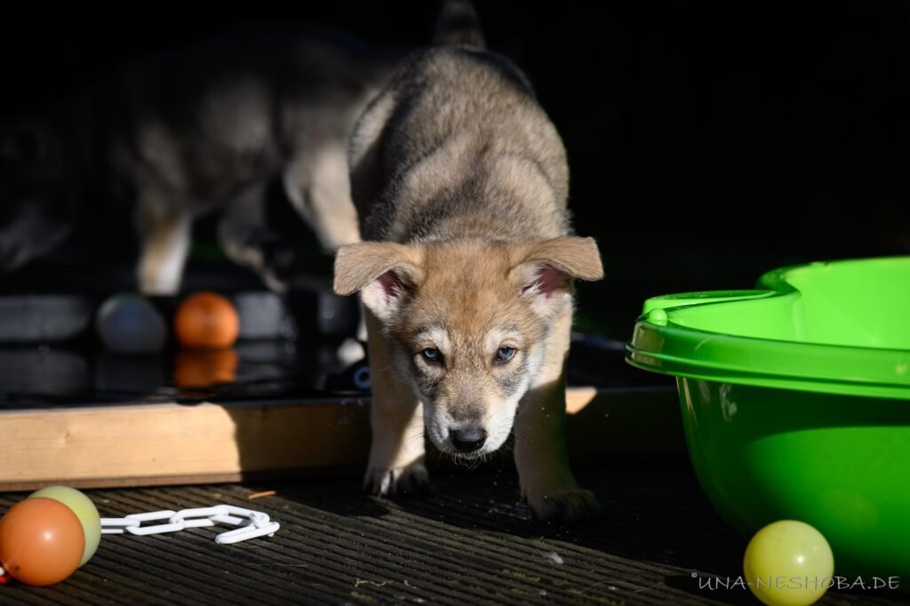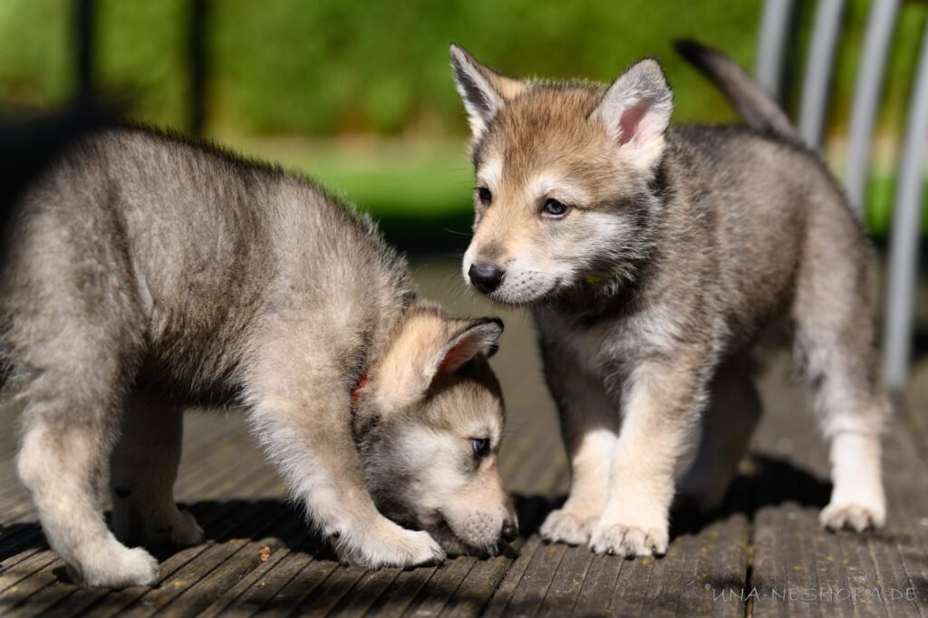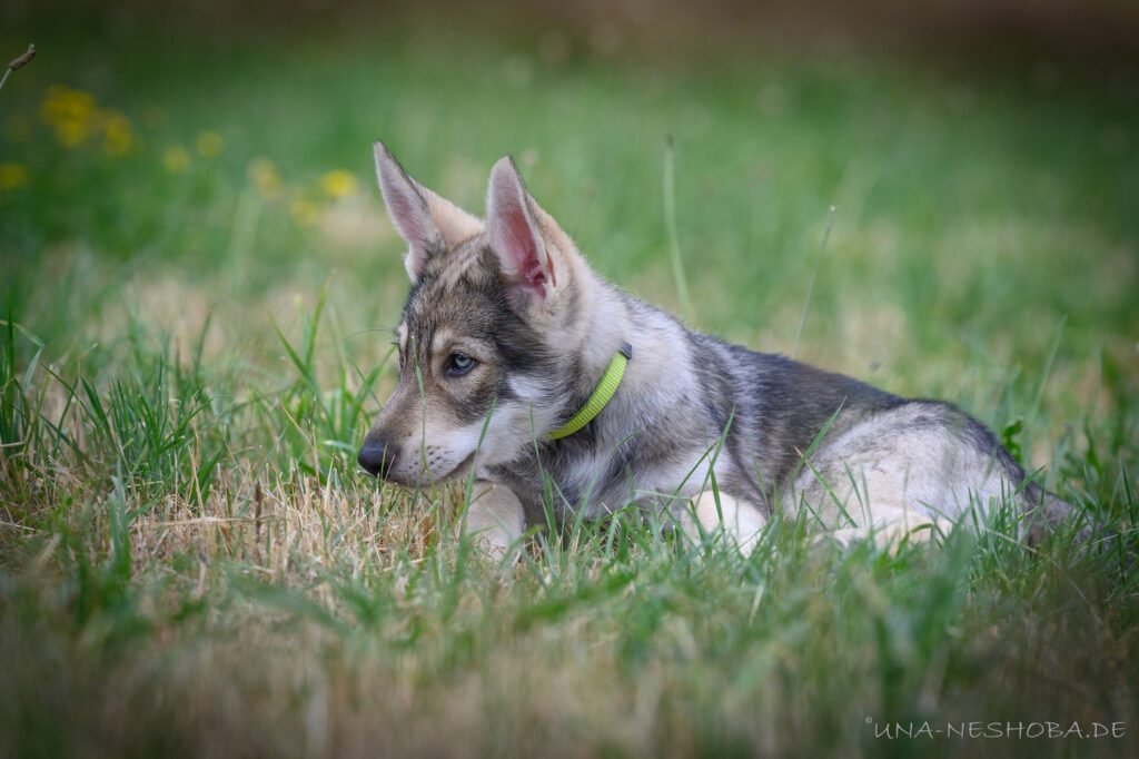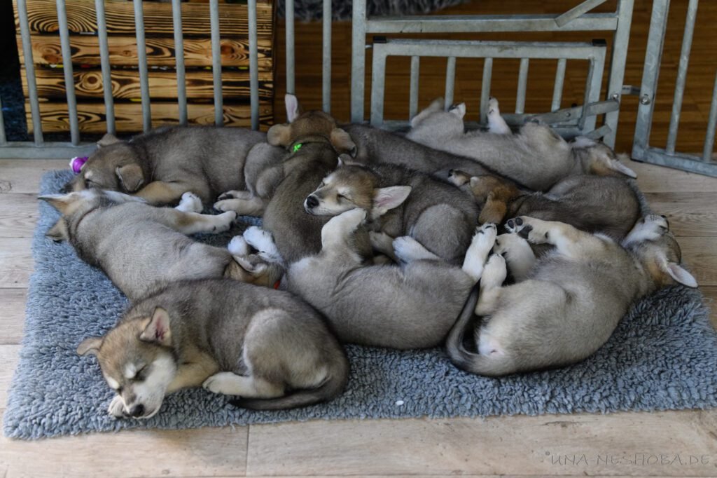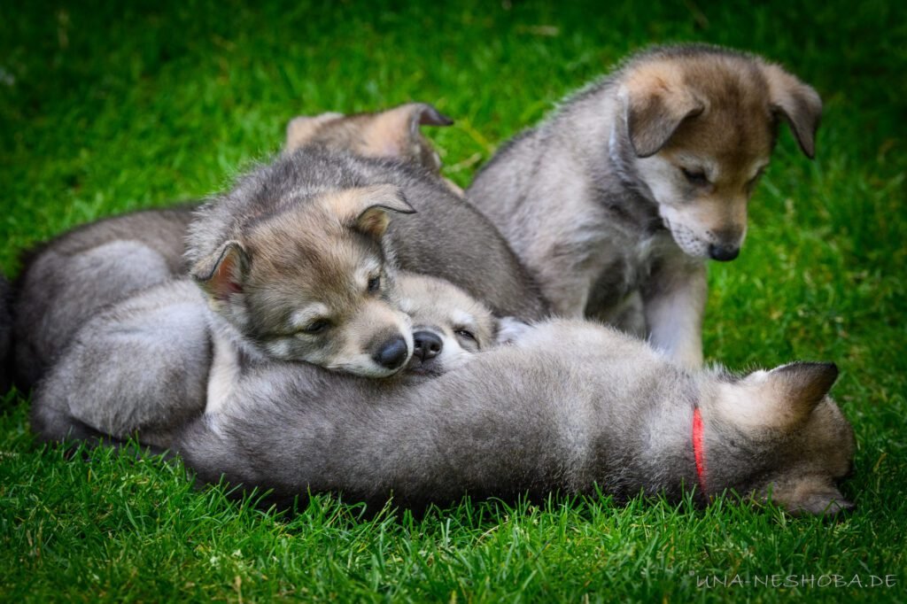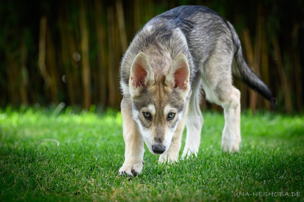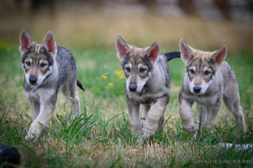 Je suis très heureux d’avoir pu croiser sur ma route de l’élevage du chien-loup de Saarloos, Carmen Tischler. 15 chiots sont nés de cette collaboration. Deux femelles sont restées à l’élevage Una Neshoba et devraient à leur tour prendre part à la production du chien-loup de Saarloos : Khalibisnya Maginwulf Une Neytiri et Haeva Nayeli Una Neshoba. Également dans leurs fratries, certains de leurs frères seront aussi disponibles à la reproduction.