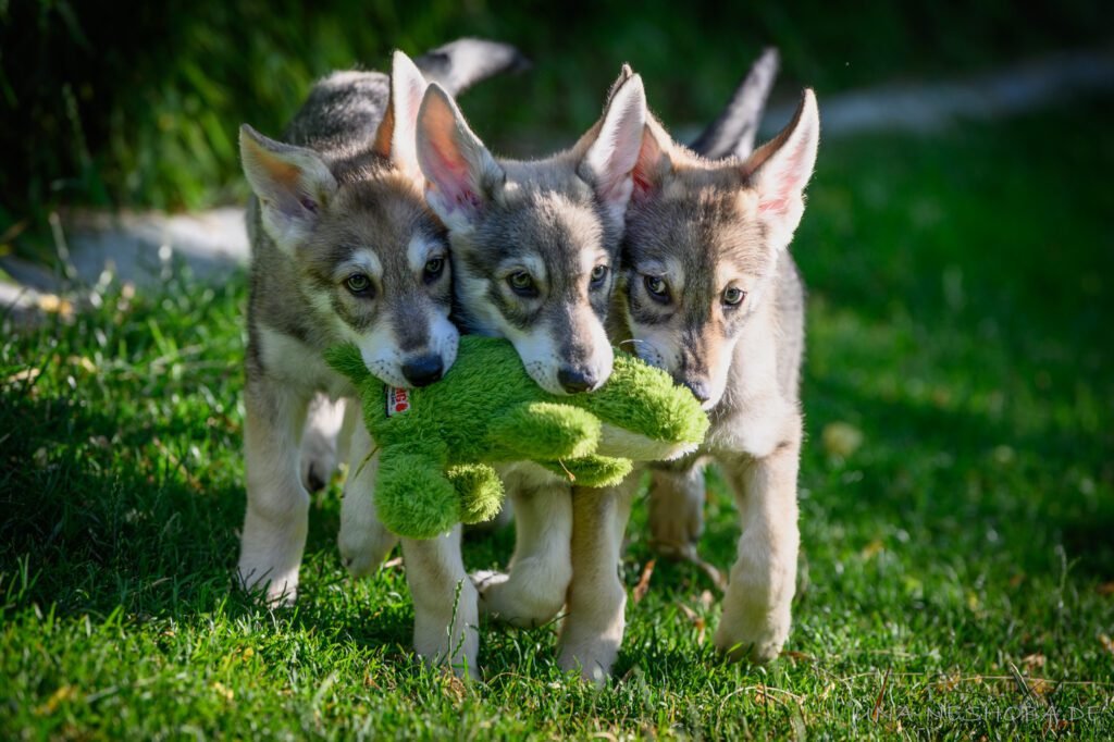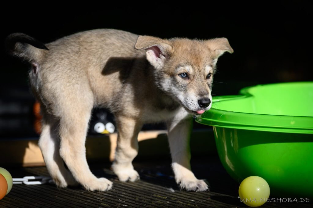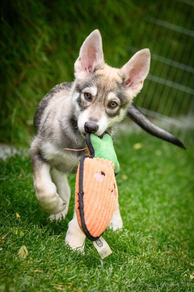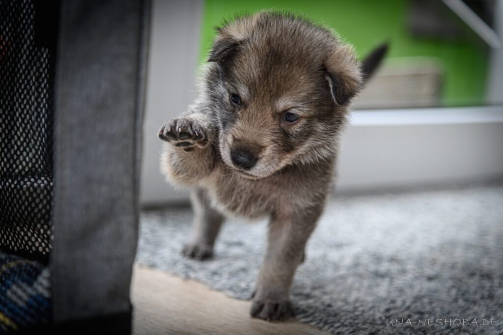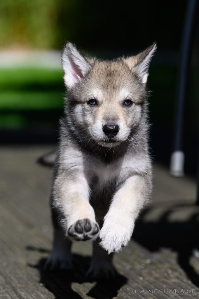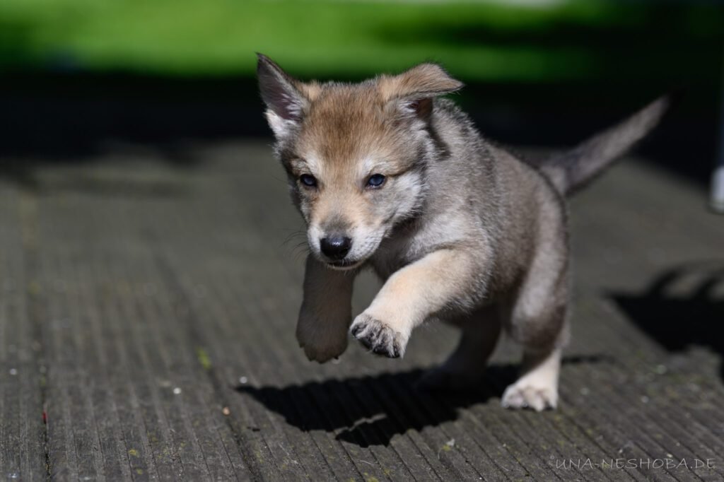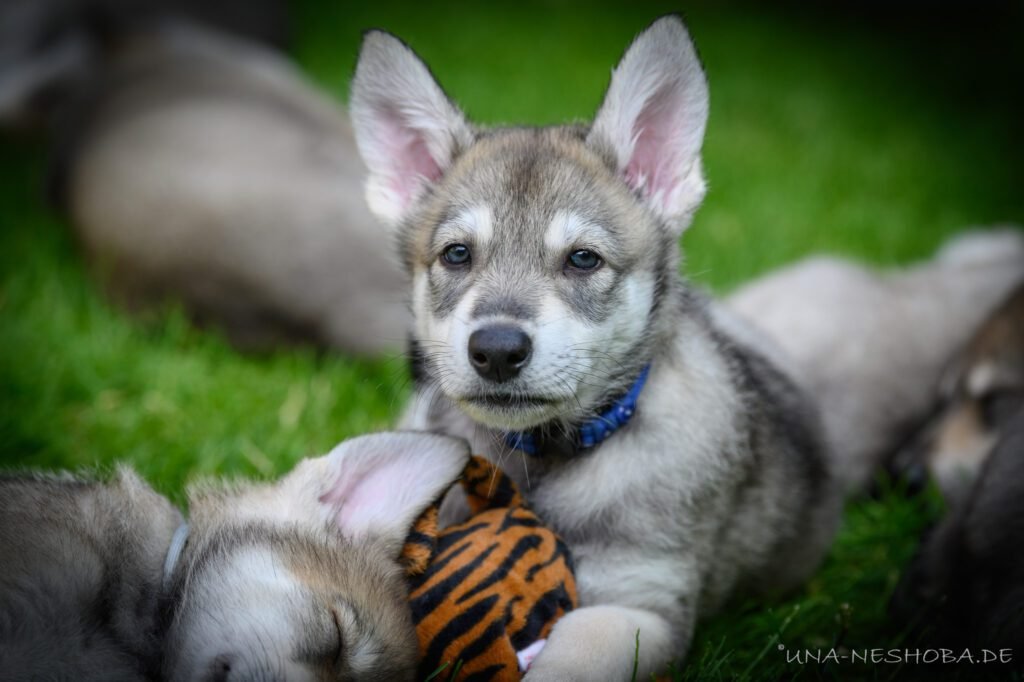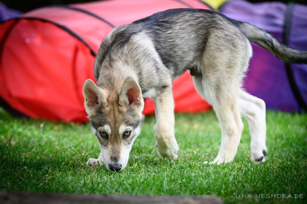 Je suis très heureux d’avoir pu croiser sur ma route de l’élevage du chien-loup de Saarloos, Carmen Tischler. 15 chiots sont nés de cette collaboration. Deux femelles sont restées à l’élevage Una Neshoba et devraient à leur tour prendre part à la production du chien-loup de Saarloos : Khalibisnya Maginwulf Une Neytiri et Haeva Nayeli Una Neshoba. Également dans leurs fratries, certains de leurs frères seront aussi disponibles à la reproduction.