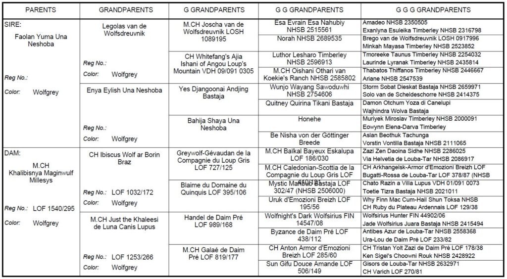 Pédigree de la portée Khalibisnya Maginwulf 2023