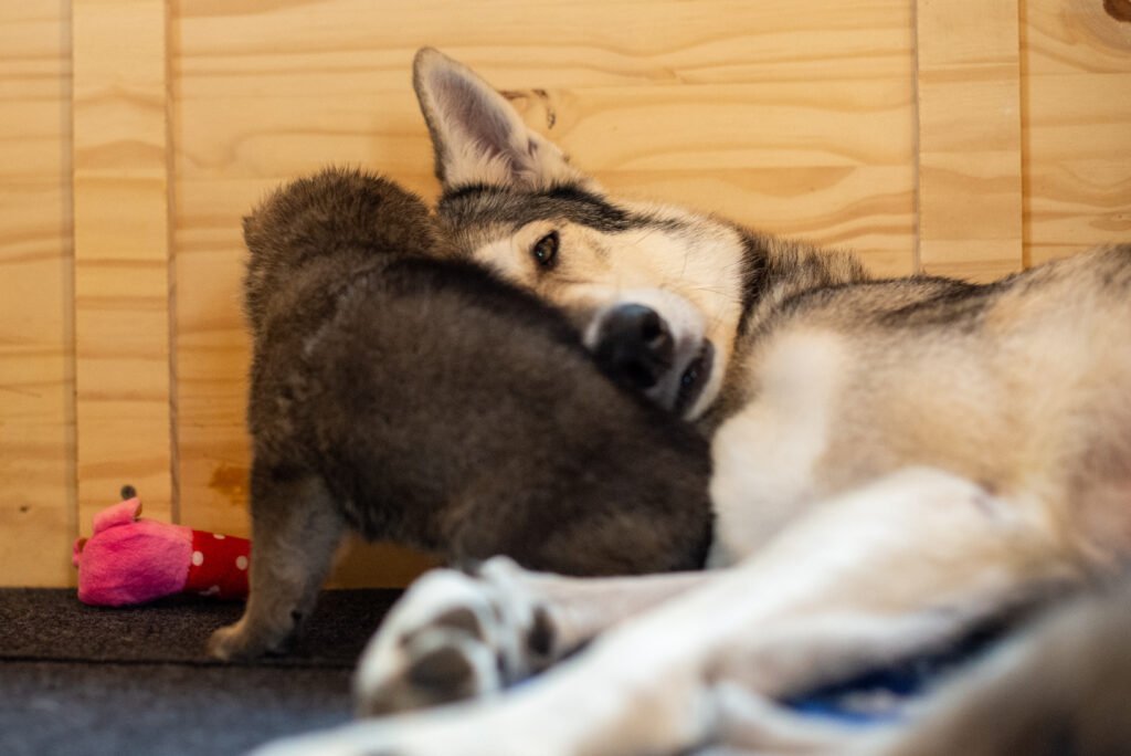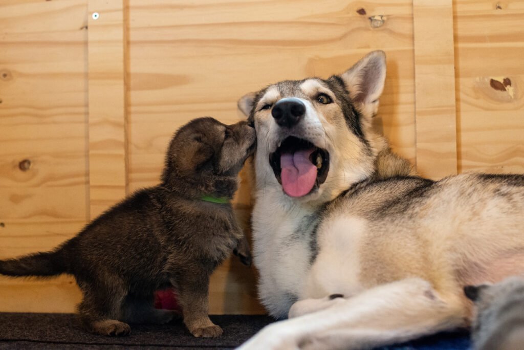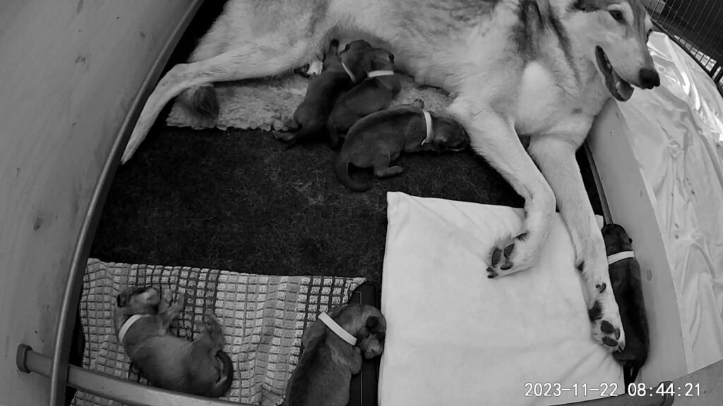 Cette portée sera la première à bénéficier d’un nouveau protocole de mise bas dans l’obscurité et d’un nouveau tapis de sol dans la caisse de mise bas pour lutter encore plus efficacement contre les risques de dysplasie des hanches.