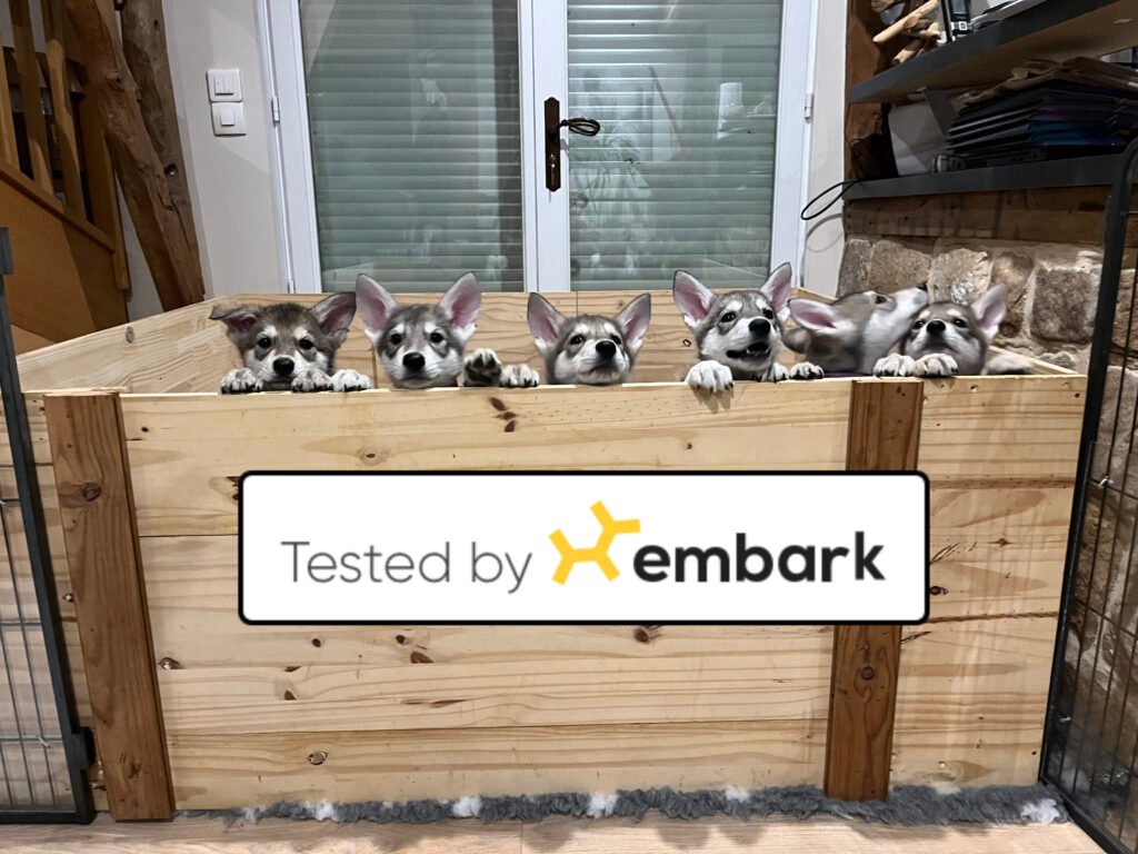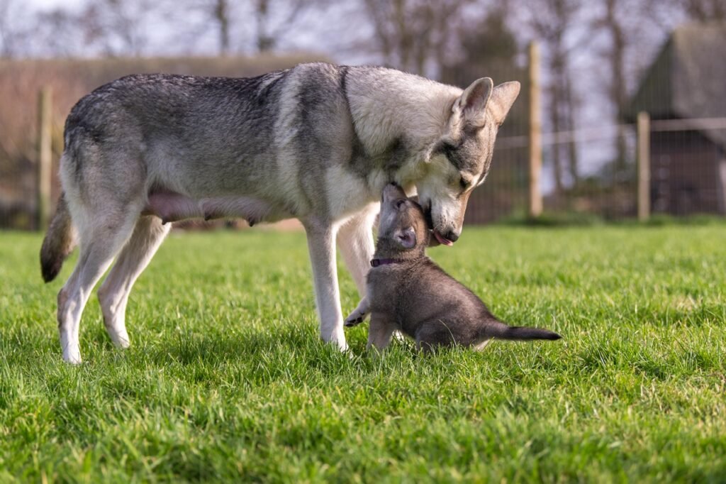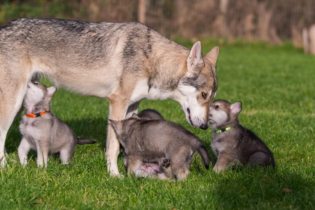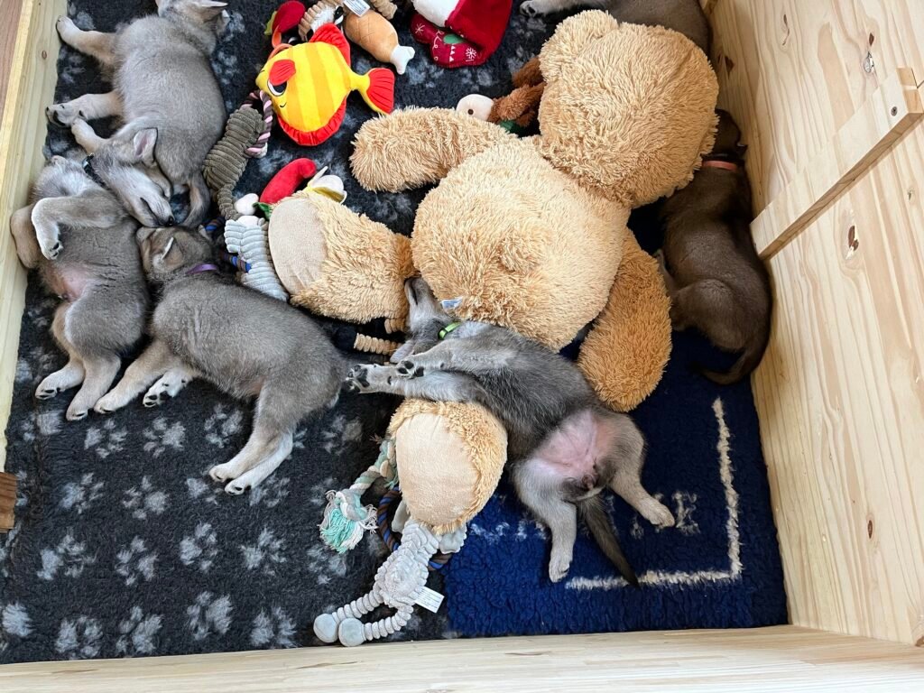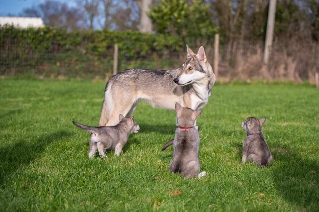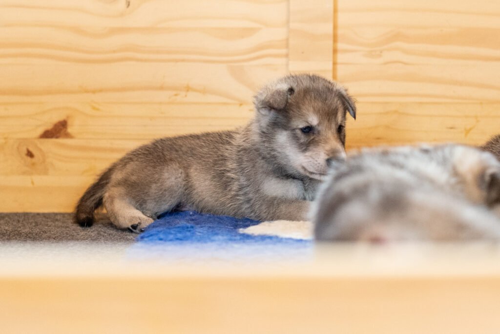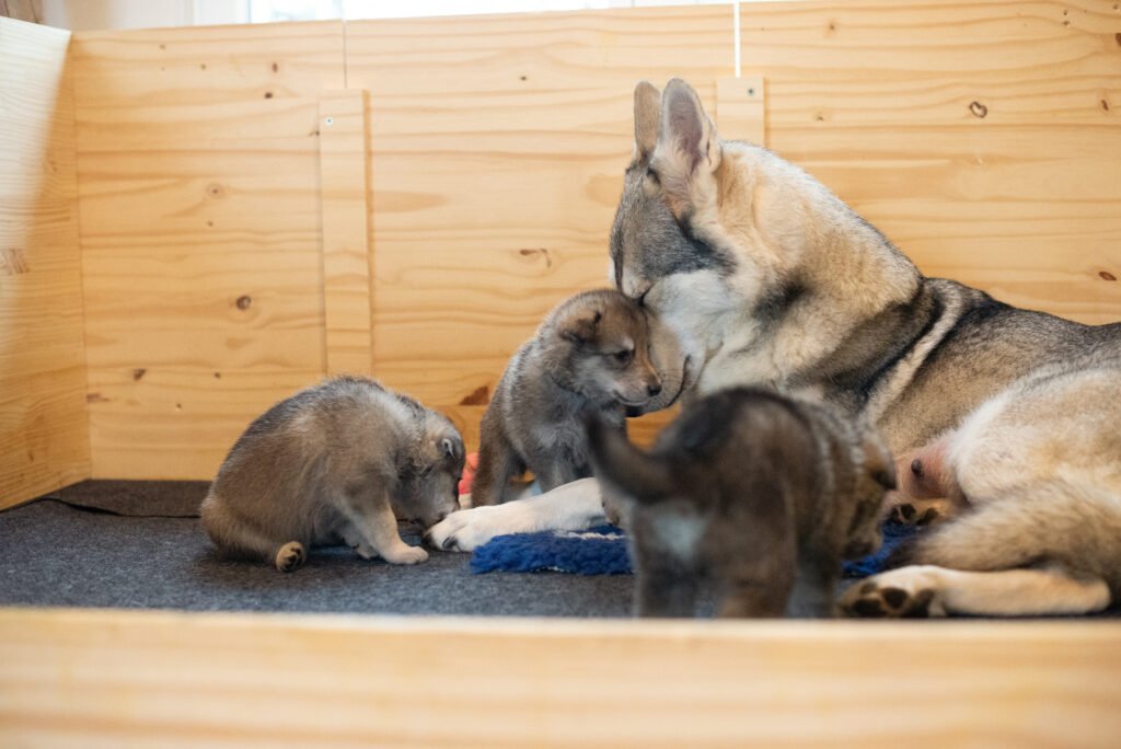 Je suis éleveuse de chiens-loups de Saarloos depuis 2007 et j’ai beaucoup appris de cette « expérience ». Nous adapterons nos méthodes d’élevage pour les prochaines portées de la même manière. Pour moi, c’est une étape logique de la phase végétative, car elle imite la nature. Une louve donne naissance à ses petits dans une tanière obscure, où les petits passent également les trois premières semaines de leur vie jusqu’à ce qu’ils quittent la tanière. Cette période sert aux chiots pour les seules choses importantes de cette phase : dormir, boire le lait maternel et grandir !
