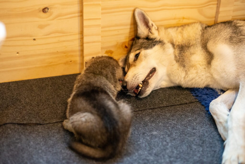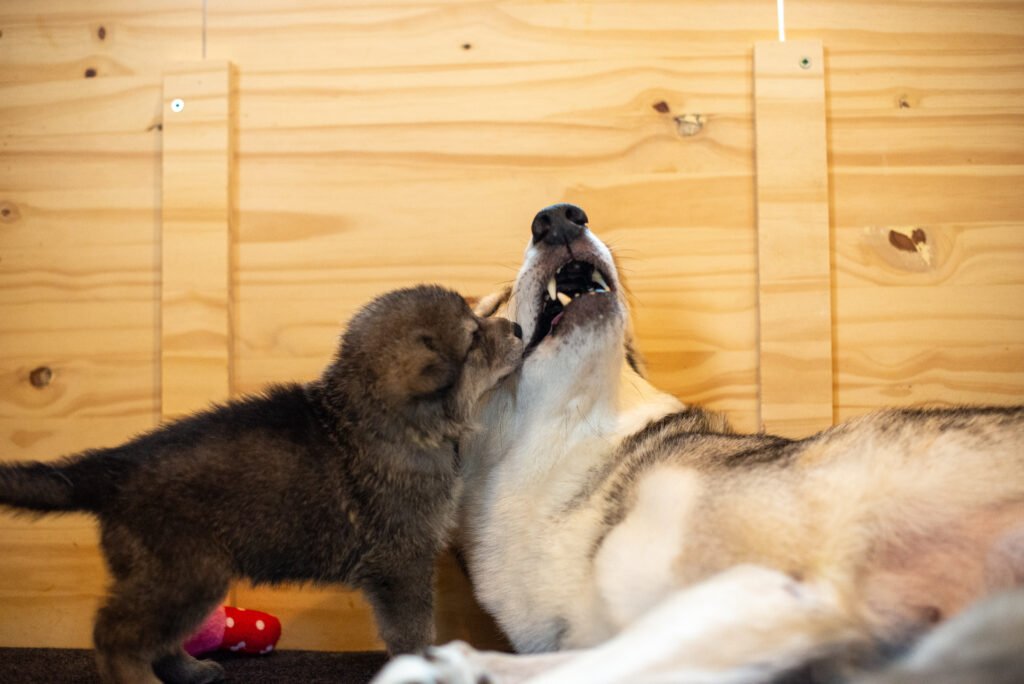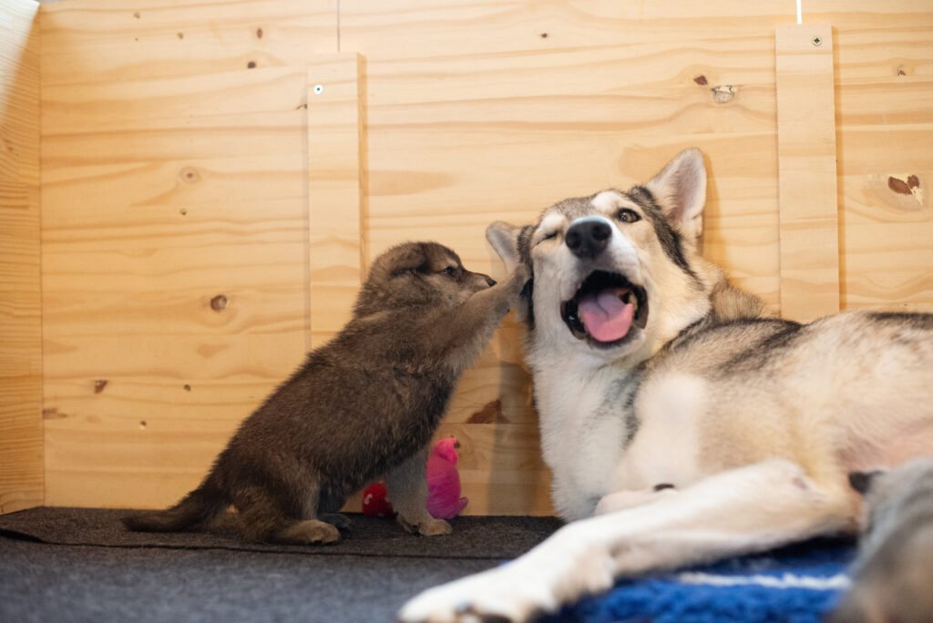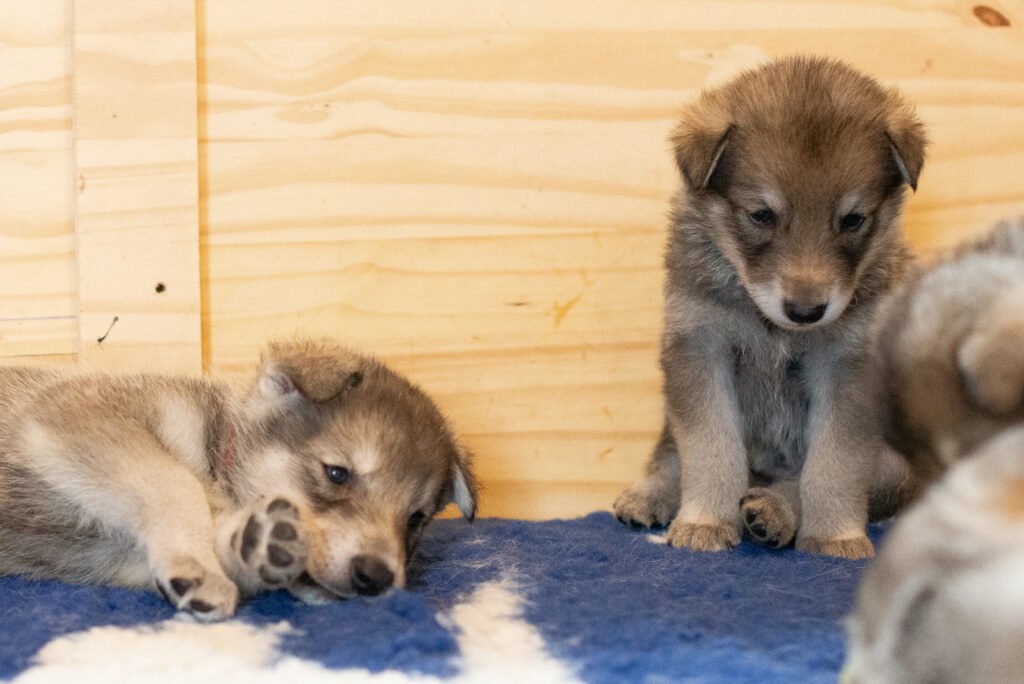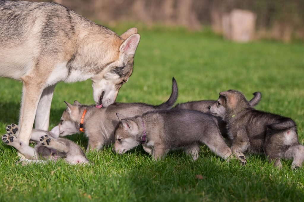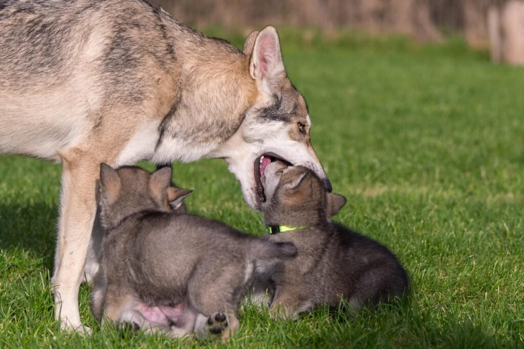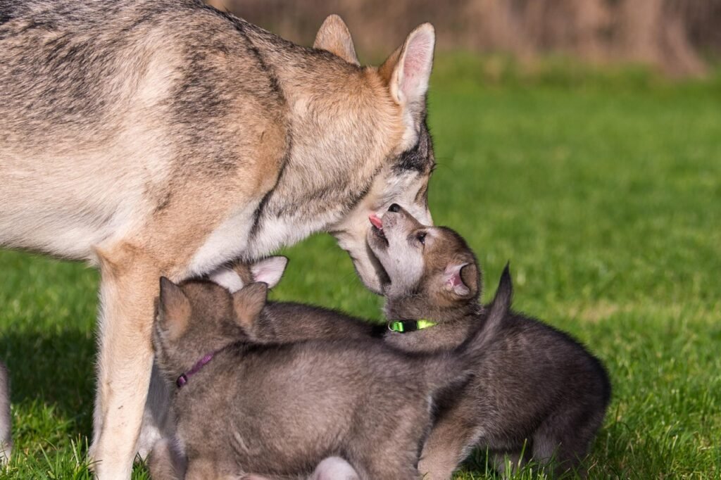 Je suis éleveuse de chiens-loups de Saarloos depuis 2007 et j’ai beaucoup appris de cette « expérience ». Nous adapterons nos méthodes d’élevage pour les prochaines portées de la même manière. Pour moi, c’est une étape logique de la phase végétative, car elle imite la nature. Une louve donne naissance à ses petits dans une tanière obscure, où les petits passent également les trois premières semaines de leur vie jusqu’à ce qu’ils quittent la tanière. Cette période sert aux chiots pour les seules choses importantes de cette phase : dormir, boire le lait maternel et grandir !