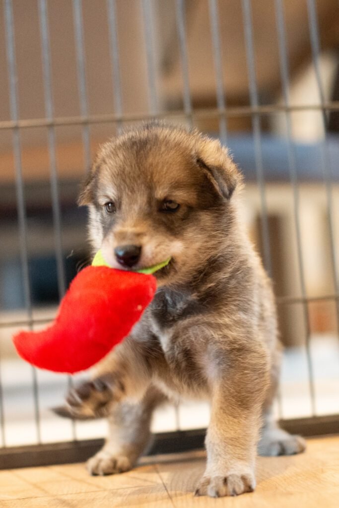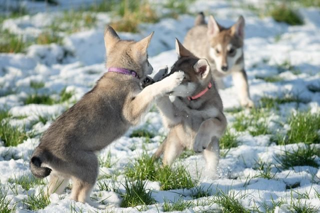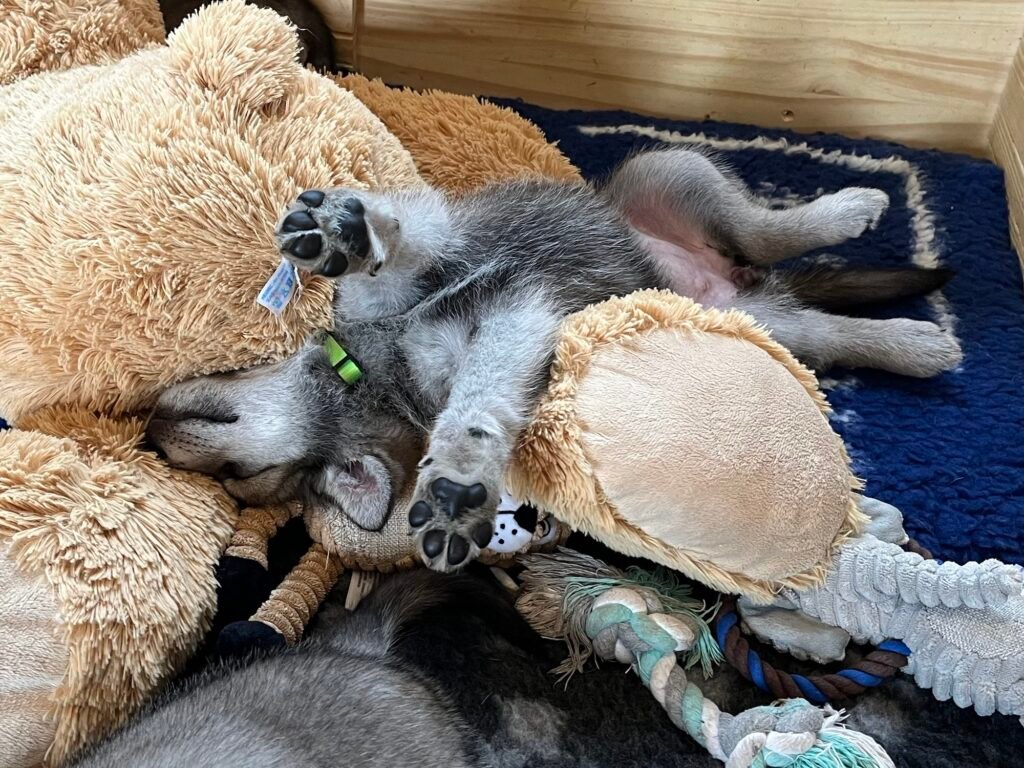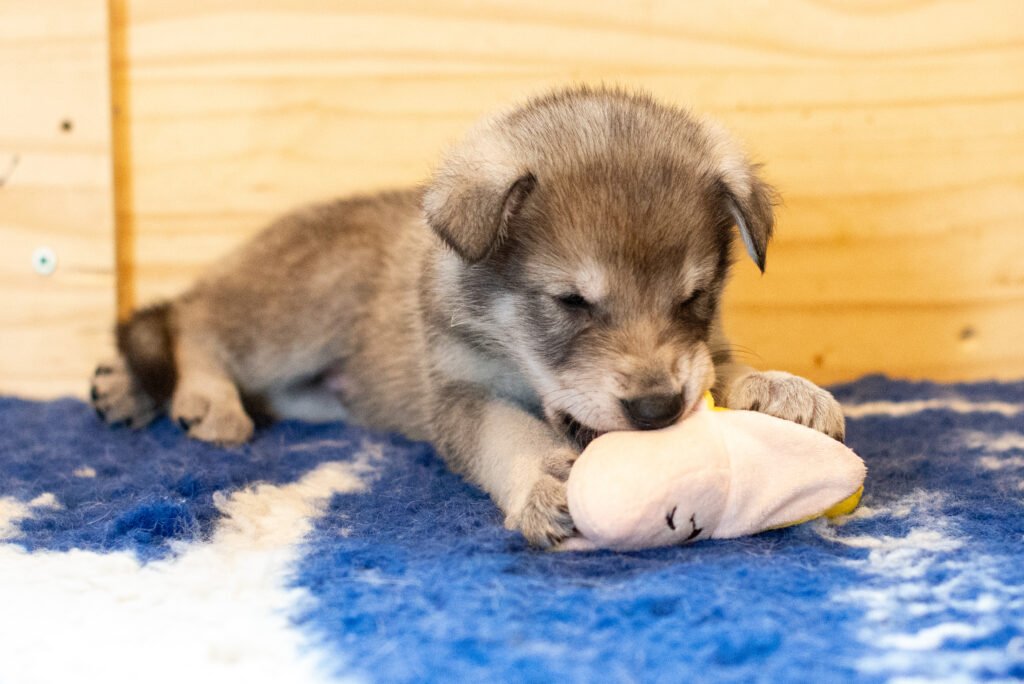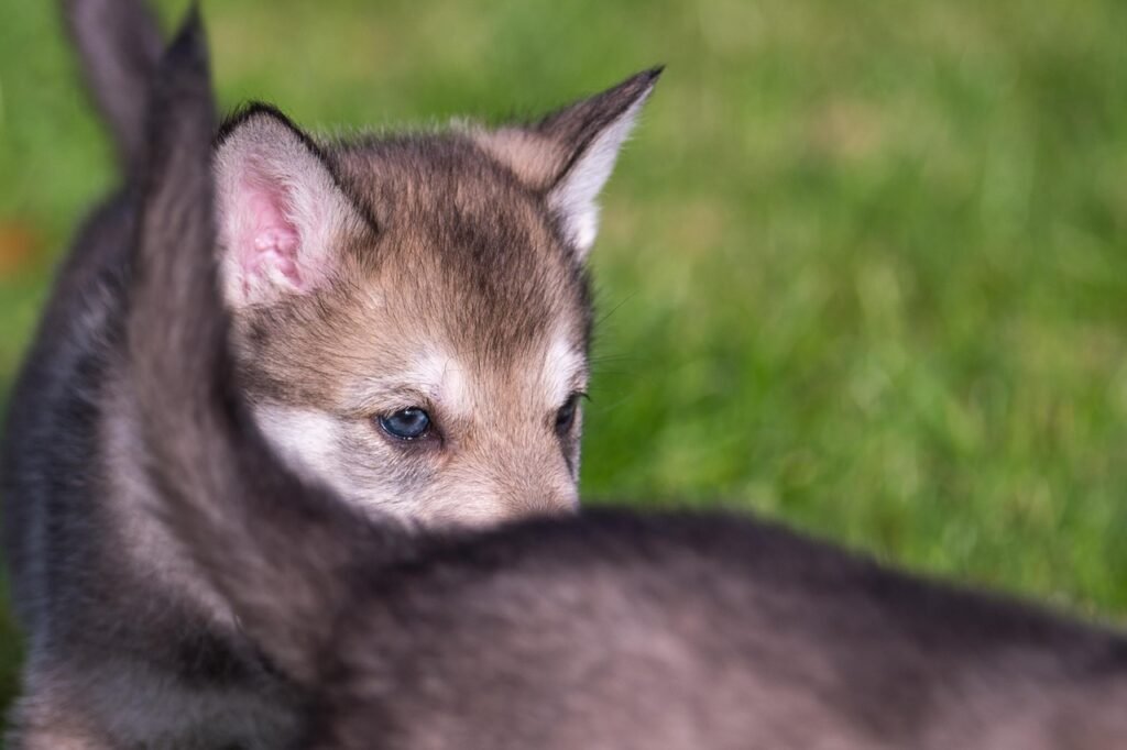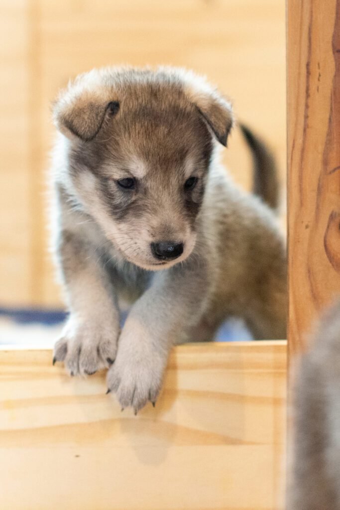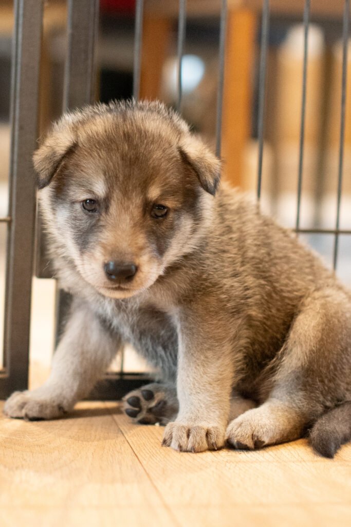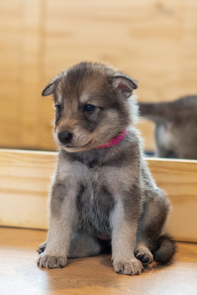 Je suis éleveuse de chiens-loups de Saarloos depuis 2007 et j’ai beaucoup appris de cette « expérience ». Nous adapterons nos méthodes d’élevage pour les prochaines portées de la même manière. Pour moi, c’est une étape logique de la phase végétative, car elle imite la nature. Une louve donne naissance à ses petits dans une tanière obscure, où les petits passent également les trois premières semaines de leur vie jusqu’à ce qu’ils quittent la tanière. Cette période sert aux chiots pour les seules choses importantes de cette phase : dormir, boire le lait maternel et grandir !