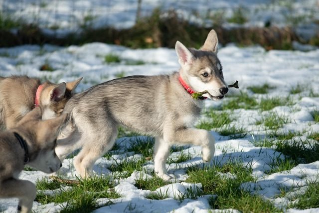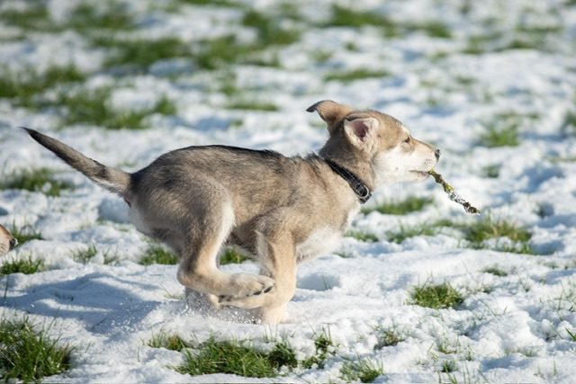 Nous sommes très contents d’elle, c’est une Saarloos vraiment facile à manipuler, je dirais presque un « chien de débutant », mais c’est bien sûr subjectif, car nous possédons des chiens-loups de Saarloos depuis plus de 20 ans maintenant et avons beaucoup d’expérience, ce qui nous facilite bien sûr la tâche pour la former et l’éduquer.